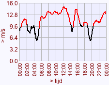 - Maximum waarde windstoot voor deze dag het vorige jaar: 18,7 (14:55)