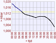 - Minimum waarde luchtdruk voor deze dag het vorige jaar: 1001,7 (23:55)