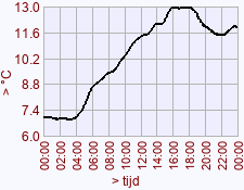 - Maximum waarde temperatuur voor deze dag het vorige jaar: 13,0 (15:30)
